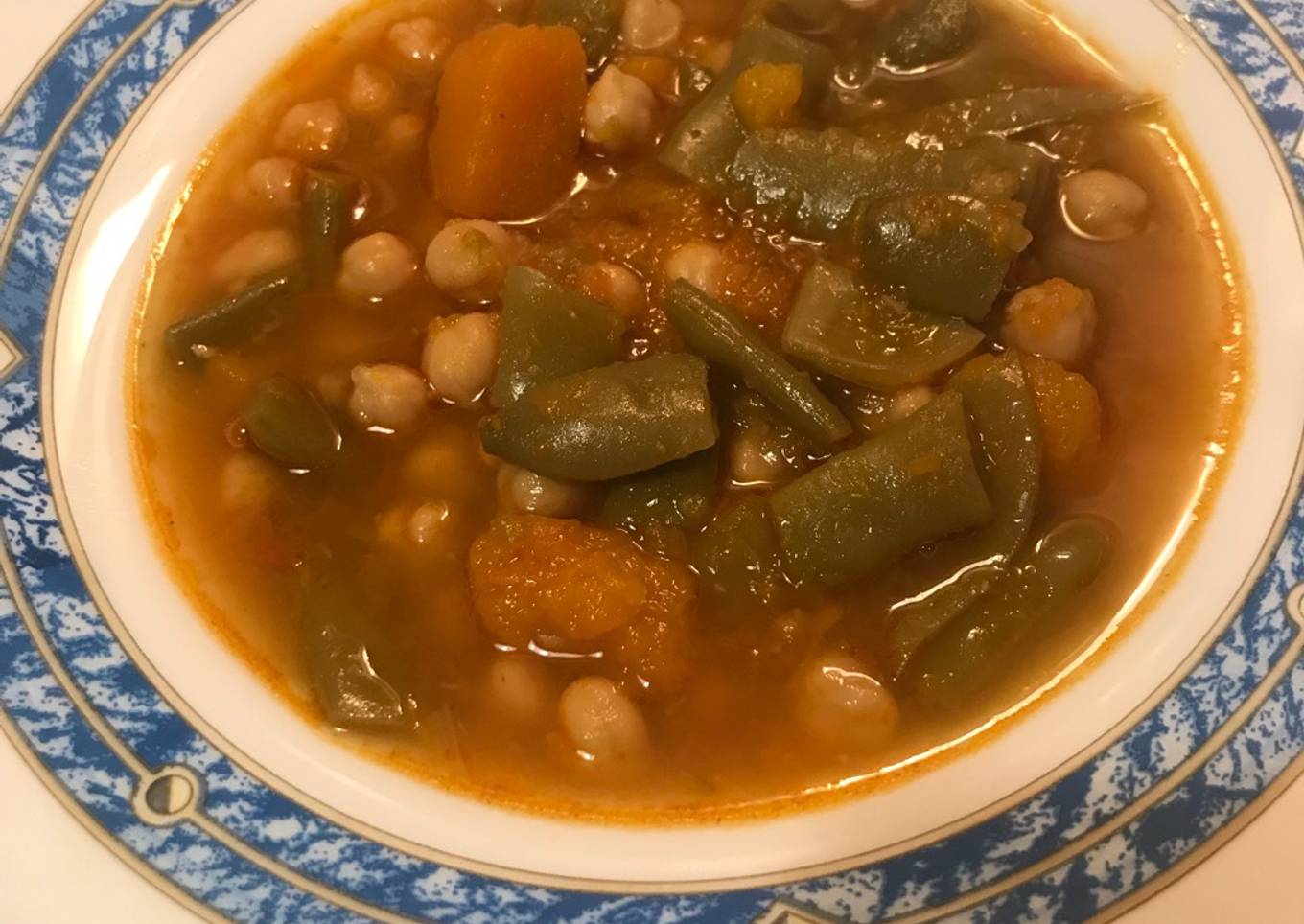 Potaje de garbanzos con habichuelas y calabaza