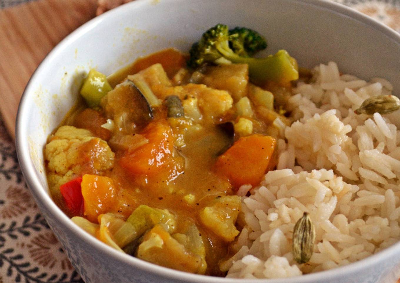 Curry de verduras con arroz aromático