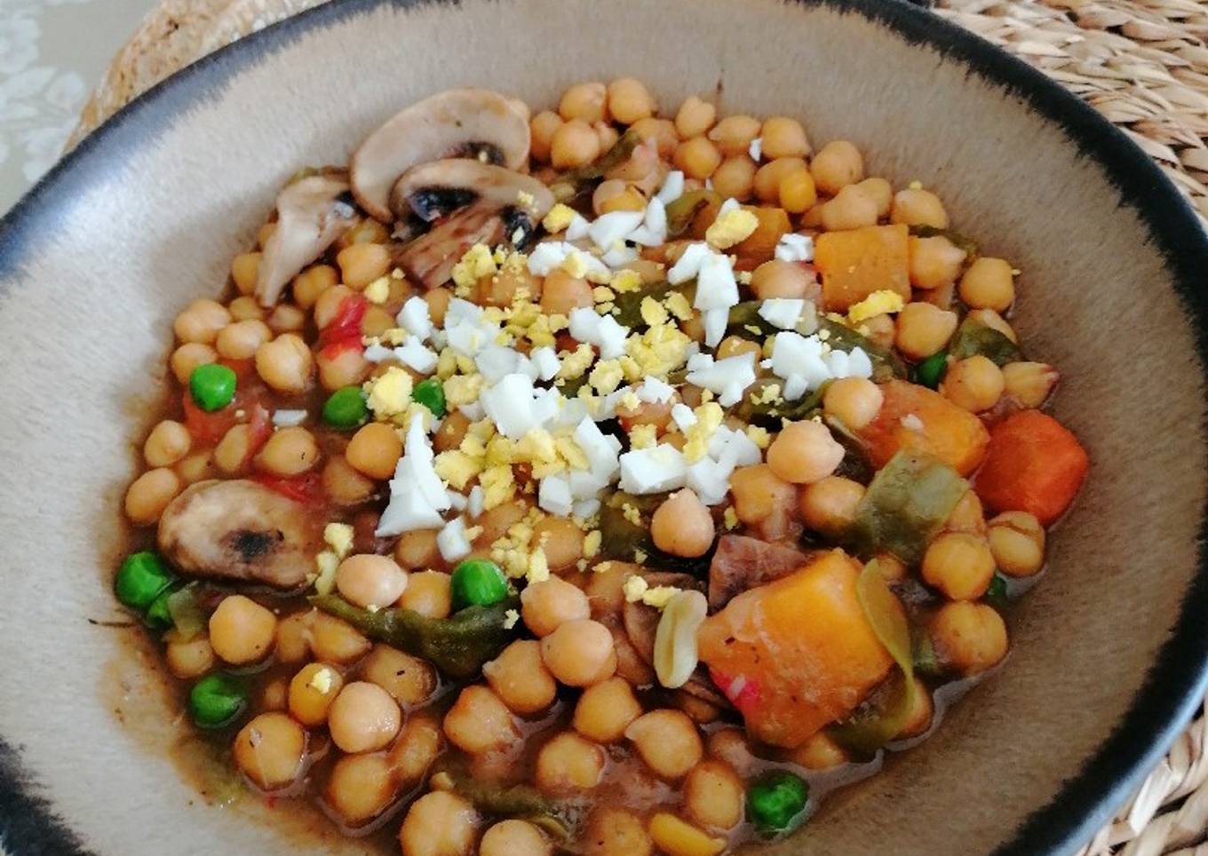 Un guiso de garbanzos con verduras rico, sano y con mucho sabor. Yo he usado garbanzos pequeños de la zona de La Puebla Nueva (Toledo)